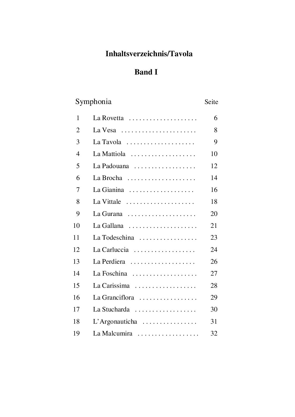 Durch die vom Komponisten selbst hinzugefügten ad-libitum-Stimmen lassen sich die Sinfonien als Solo, Trio oder Quartett gleichermaßen aufführen - ein seltener Fall der Besetzungsgeschichte! 37 Charakterstücke („La Gran Battaglia“) und Tanzsätze („La Paduana“) in zwei Bänden (Partitur und Stimmen)